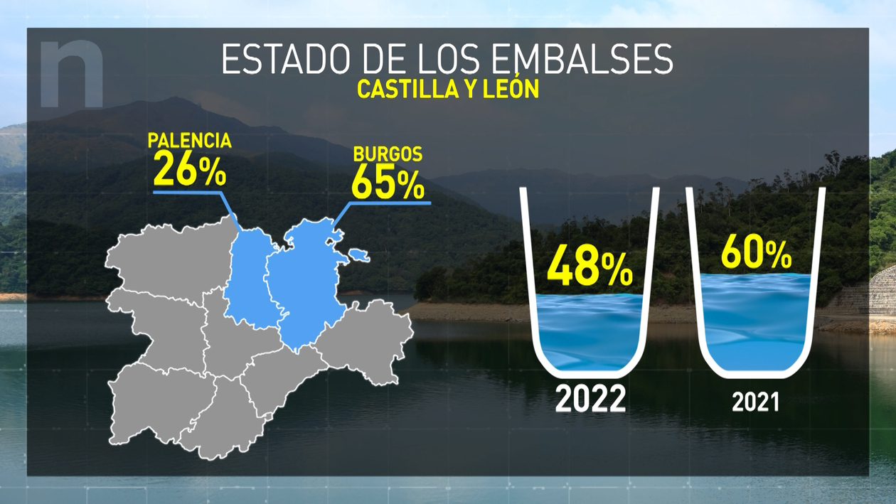La escasez de agua condiciona la vida de algunos pueblos. Los embalses de la cuenca del Duero están ahora misma al 48%, es sensiblemente menos agua que en el verano pasado que estaban al 60 %. Hay diferencias entre provincias; del nivel más alto, un 65% en Burgos al 26% en Palencia. Y con estas reservas el campo también se está resintiendo