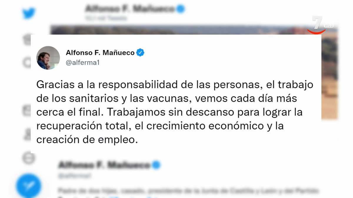 A través de su cuenta de Twitter, Mañueco señala que han sido dos años "de lucha incesante", "desvelos y sufrimiento". "Un día para recordar a todos los que nos arrebató esta terrible pandemia y reiterar nuestro apoyo a sus familias", ha añadido.