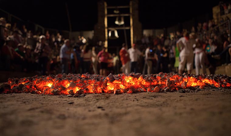 Un año más la televisión autonómica se compromete con uno de los eventos de referencia en Castilla y León, un festejo que congrega a lugareños y turistas y cuyos participantes caminan descalzos sobre una alfombra de brasas de madera de roble, solos o con una carga encima. La tradición indica que se trata de un medio para lograr la inmortalidad a través de la hoguera purificadora.