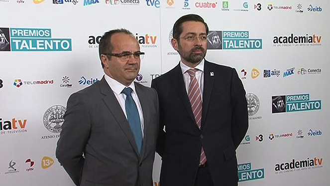 Eduardo Álvarez, director general de RTVCyL, y Florencio Carrera, director de La 8 Valladolid, recogieron ayer en Madrid los respectivos Premio Talento 2015 con los que la Academia de Televisión reconoce anualmente la excelencia profesional de los profesionales del sector que trabajan cada día detrás de las cámaras. Los académicos América Valenzuela y Goyo González condujeron la gala de la decimoquinta edición, en la que se rindió un homenaje especial a Ignacio Salas, tercer director de la Academia y creador de los Premios Talento, quien falleció el pasado mes de enero.
