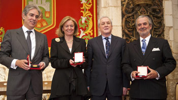 El editor de Diario de Burgos, Antonio Miguel Méndez Pozo, ha entregado este lunes en la Sala Capitular del Monasterio de San Juan de la capital burgalesa la Medalla de Oro del periódico a Antonio Fernández-Galiano, Carlos Herranz y Catalina Luca de Tena.