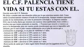 El Palencia CF precisa de liquidez para poder hacer frente a las tres nóminas que adeuda al cuerpo técnico y jugadores.