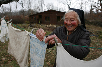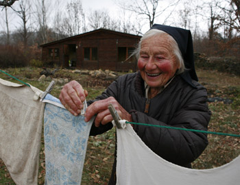 Nada teme y nada espera Juliana Vermeire, monja cisterciense belga que vive en mitad de un prado, a los pies de la Sierra Cebollera, en una casa prefabricada de madera sin calefacción y sin agua. Se levanta a las 2.00 de la mañana y se acuesta sobre las 8 de la tarde, aprovechando la mayoría de las horas para rezar, principalmente, leer y escuchar a Bach. No come más que lo que su pequeña huerta le proporciona y a sus 81 años de edad afirma no querer ser famosa por su forma de vida. "Las cosas buenas no necesitan promoción, no me hagáis fotos", sentencia en un perfecto castellano.