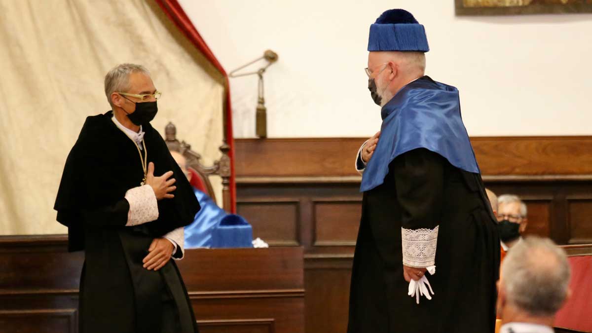 El vicepresidente ejecutivo de la Comisión Europea, Frans Timmermans, ha defendido el Pacto Verde Europeo durante su intervención en el acto en el que ha pasado a formar parte del claustro de doctores honoris causa de la Universidad de Salamanca (USAL).