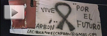 Pancartas y mensajes de apoyo a sus maridos, muchos encerrados en las minas en Palencia y otros en huelga de hambre desde hace días.