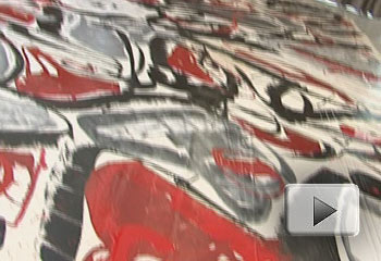 La diseñadora leonesa María Lafuente ultima los preparativos para su desfile del lunes en Cibeles. Este sábado el pintor venezolano Pedro Sandoval ha pintado para ella un cuadro que servirá de fondo a ese desfile.