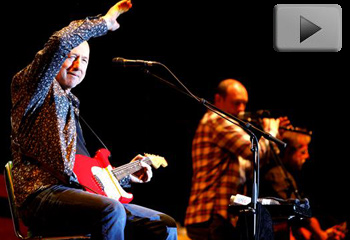 Con vaqueros, una camiseta negra, una sobrecamisa estampada y una guitarra, o algunas más, porque rara fue la canción en la que no apareció con una distinta entre sus manos –una de ellas, incluso, con una micro cámara incorporada que permitía seguir, a través de dos pantallas gigantes instaladas a ambos lados del escenario, los punteos que se marcó en varios temas el guitarrista-, Mark Knopfler deleitó a los asistentes con unos primeros temas pertenecientes a su trayectoria en solitario.