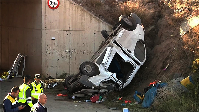 El accidente ha tenido lugar en el kilómetro 12 de la RM-11, en sentido Águilas, cuando el vehículo se ha salido de la carretera y se ha caído por un puente. Los otros tres ocupantes de la furgoneta han resultado heridos.