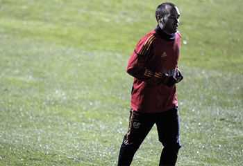 El barcelonista cumplió sin problemas los ejercicios que hicieron todos los convocados y cuando Vicente del Bosque, seleccionador nacional, dispuso un partidillo a tres cuartos de campo, se retiró.
