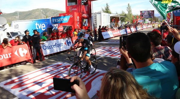 La localidad segoviana de Riaza acogió este jueves por primera vez el final de una etapa de la Vuelta Ciclista a España, la decimoctava, con 204 kilómetros, salida en Roa (Burgos) y a sólo tres días de que el pelotón llegue a Madrid. El puerto de la Quesera, de primera categoría y localizado en la sierra de Ayllón, terminó de agitar la carrera a 14 kilómetros de la meta, situada en la explanada del parque del Rasero, donde la fiesta estaba garantizada desde horas antes con la presencia de miles de aficionados.