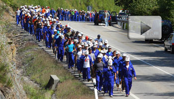 Ovación de los vecinos de Paramo del Sil cuando la marcha minera llegaba a la localidad. Pletóricos a pesar de un esfuerzo para el que dicen no estar preparados. Optimistas sobre todo por el calor transmitido por la gente que les ha respaldado al paso por los pueblos del Alto Sil.
