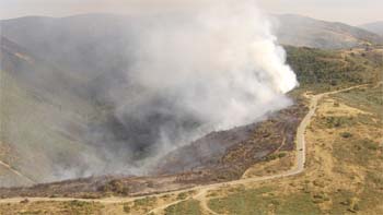 "Está a unos dos kilómetros por encima de Riego de Ambrós, en la zona donde están los depósitos", aclaró el regidor, que considera que ahora lo más importante es evitar que el fuego pase al lado derecho de la carretera y amenace a las poblaciones de El Acebo y Riego. La zona afectada por las llamas es principalmente monte bajo, pinar y roble.