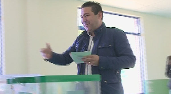 Ni madrugador ni lo contrario. Pasadas las diez de la mañana, el cabeza de lista de la Unión del Pueblo Leonés a las Cortes Autonómicas, Luis Mariano Santos, ejerció el derecho al voto en su localidad natal, Cistierna (León). Confiado en que las urnas avalen el trabajo de dos intensas semanas de campaña electoral pero también el de la formación durante los últimos cuatro años, afronta la jornada electoral 'como los estudiantes, esperando a ver la nota que nos ponen los ciudadanos'.