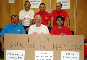 Los seis representantes de CCOO y UGT encerrados en la sede del Ministerio de Industria han iniciado una huelga de hambre, en la que sólo ingerirán líquidos, al cumplirse las 00.00 horas del miércoles, coincidiendo con la primera jornada de paro total del sector minero en España. El ayuno durará ocho días hasta la huelga general, convocada el próximo 29 de septiembre.