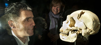 El exdeportista miro de frente y con detenimiento el cráneo, lo examinó y hasta se fotografió con él. Minutos después, en declaraciones a los medios afirmó que el encuentro le hizo recordar "aquellos años importantes en su carrera, que también lo fueron para los descubrimientos de Atapuerca".