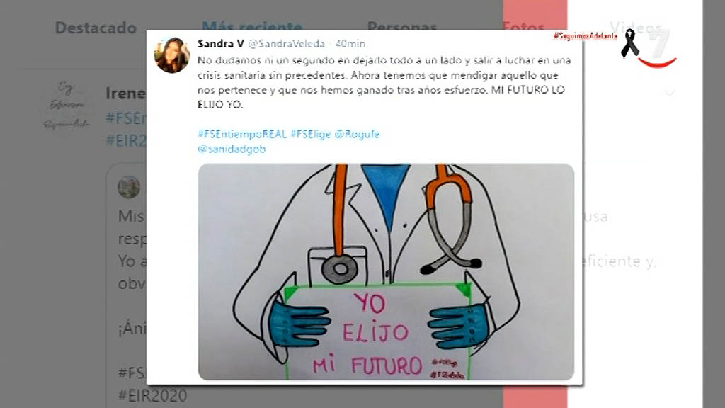 Las reivindicaciones de los futuros MIR han marcado tendencia en Twitter. En un día han recibido más de 400.000 mensajes de apoyo. Y como no pueden pedirlo en la calle, lo hacen en las redes. Más de 10.000 opositores se niegan a elegir especialidad de forma on line.
