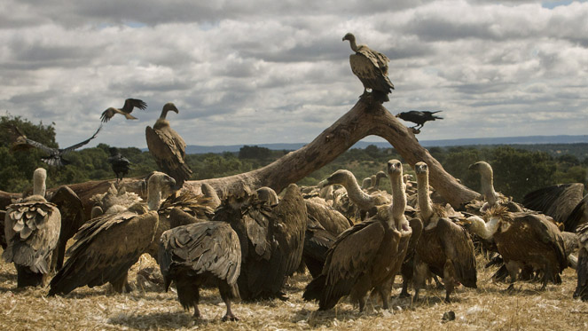Desde 2013 hasta esta semana se ha autorizado a dejar en el campo 1.488 toneladas de cadáveres de animales de explotaciones ganaderas de Castilla y León, que han podido alimentar a una de las poblaciones más importantes de especies necrófagas de España, entre las que destacan 7.000 parejas de buitre leonado -una cuarta parte de la cifra nacional-, 380 parejas de alimoche -el 26,2 por ciento-, el 15 por ciento de la población de buitre negro y de águila real, 70 parejas de águila imperial ibérica y la mitad de los milanos reales invernantes y reproductores del país.