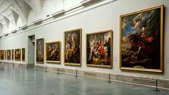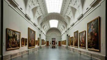 La Galería Central permite entender perfectamente este desarrollo ya que empieza con Tiziano, en el centro entronca con la gran Sala Velázquez (Sala 12) y, pasando por los grandes cuadros de Rubens, deja ver al final de la perspectiva la Familia de Carlos IV de Goya.