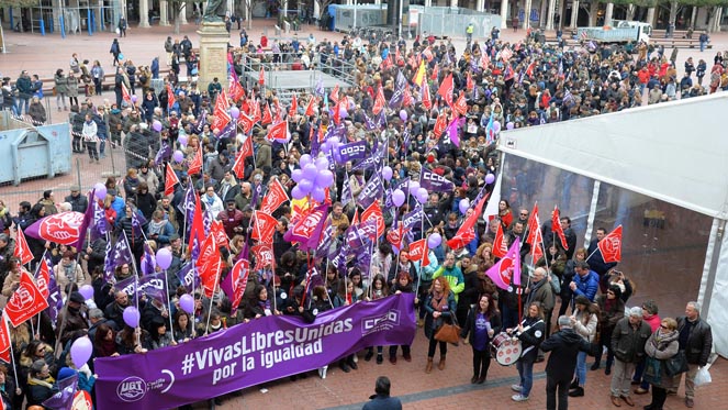 Así, el secretario provincial de UGT, Pablo Dionsio Fraile, calificó la jornada de ''histórica'' en cuanto a que ''se reclaman los derechos, las libertades'' y, sobre todo, apeló a la ''necesidad absoluta de visibilidad que tiene un día como hoy en el que se denuncian la precariedad laboral, la violencia de género, en definitiva, los derechos y libertades de las mujeres''.