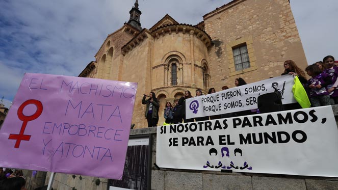 Más de un millar de mujeres de todas las edades participaron en la concentración convocada por los colectivos que integran la Asamblea 8M de Segovia en la plaza de San Martín, y celebraron un gran acto festivo y reivindicativo en una jornada que recordaron es mucho más que una huelga general laboral y estudiantil, es también ''de cuidado'' y de ''consumo'', según explicó la portavoz de la organización, Neis Ramiro, que calificó esta movilización de "éxito rotundo''.
