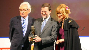 El último en recoger su 'Micrófono de Oro' fue el presidente 'popular' Mariano Rajoy que, a preguntas de Del Olmo, reconoció haber bajado de peso y recomendó hacer una hora de deporte diaria y dejar de fumar, aunque él todavía no ha dejado el "purito". En esta ocasión, el responsable del PP si entró en la arena política para comprometer un plan a cuatro años centrado en la creación de empleo que daría "seguridad, certidumbre y disiparía dudas". Así, tampoco cree en los anunciados "brotes verdes" del PSOE y lo comparó con el cuento de Pedro y el lobo. "Llevan tanto tiempo anunciándolo que cuando llegue al final nadie se lo va a creer", afirmó el líder de los populares.