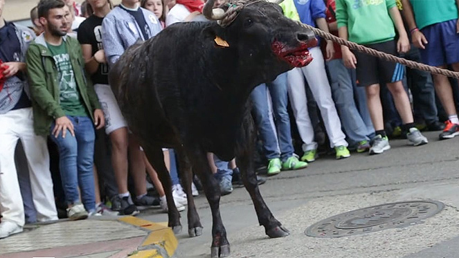 Este miércoles 26 de mayo tuvo lugar en Benavente la celebración del festejo 'El Torito del Alba'. Consiste en amarrar con un cuerda a una pequeña vaquilla, de apenas dos años de edad, para ser paseada y zarandeada por las calles del pueblo. Según el comunicado de PACMA el animal fue 'arrastrado con a cuerda, fue zarandeada y golpeada, cayó al suelo en varias ocasiones golpeándose la boca hasta sangrar, y chilló retorciéndose durante más de 10 minutos. Finalmente, fue conducida al matadero'. Ese mismo día, por la tarde, se celebró en la misma localidad, el tradicional 'Toro Enmaromado.