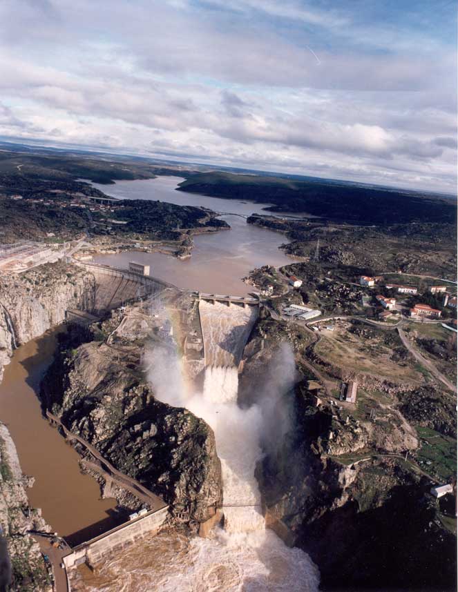 Asimismo, se detallarán los estragos y las soluciones que acompañaron al aliviadero de la presa de Ricobayo, ubicado en la zona de Arribes del Duero, en un profundo cañón labrado por el río con desniveles que en algunas secciones superan los 400 metros, con especial hincapié en lo referente al fenómeno erosivo que devoró el macizo próximo a la presa y que terminó por dibujar la impresionante cazuela de 120 metros de anchura por otros tantos de profundidad. Su construcción simboliza una historia cargada de retos para la compañía, toda una batalla entre la naturaleza y la ingeniería, que consiguió ganar el hombre cuando se logró disipar la energía de la evacuación de varios miles de metros cúbicos de agua imposibles de turbinar ni detener.