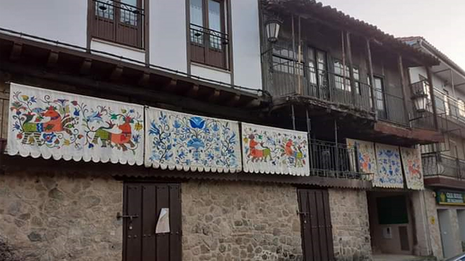 El Bordado Serrano es una antigua forma de expresión que quedó plasmada en mandiles, camisas, ropa de cama… Se transmitía de madres a hijas. Hoy en día y gracias a los talleres que realizan los vecinos, esos bordados se muestran en estandartes que engalanan nuestra Plaza Mayor en los acontecimientos y fiestas más importantes.