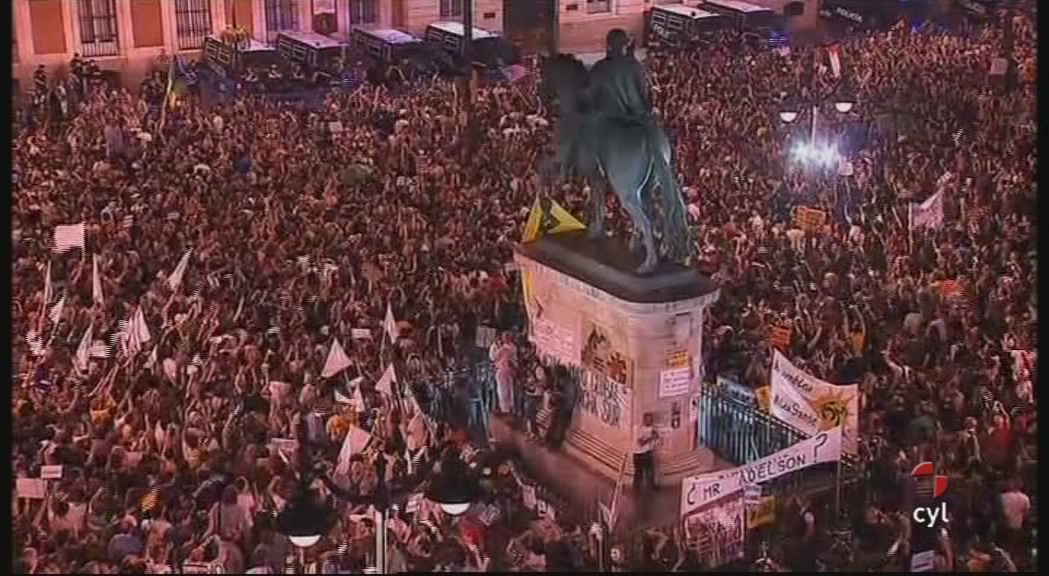 El 15 M celebra su primer cumpleaños con marchas pacíficas y multitudinarias. En Madrid, epicentro del movimiento, las protestas concluyeron de madrugada con el desalojo de un centenar de jóvenes. La policía también ha intervenido en ciudades como Valencia o Palma de Mallorca.