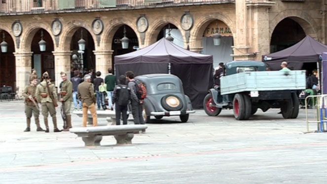 La plaza Mayor de Salamanca vestida de los años 30, tomada por militares, que anuncian la Guerra Civil. Mientras, un apresurado Alejandro Amenábar dirigía un rodaje que duró dos largas semanas, condensado en 100 minutos de historia.