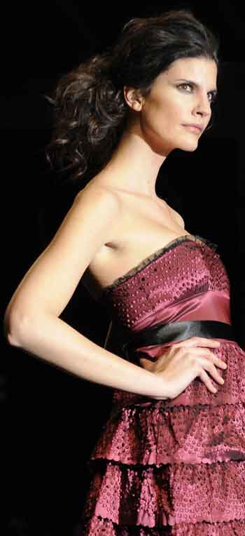 Así, las plumas o sedas de avestruz en vestidos cortos de mujer, protagonizaron la moda de la diseñadora abulense, afincada en Valladolid, que basa su colección para el próximo otoño- invierno en vestidos de mohair, cheviot, jarcard o sedas, en los que destacan las formas y la mezcla de tejidos lisos con estampados rasgadas en relieve.