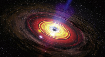 Se piensa que todas las galaxias tienen en el centro un agujero negro que traga cualquier cosa que se acerca demasiado. Hasta ahora, los agujeros negros conocidos representaban sólo una ínfima parte de la masa total de la galaxia, en torno al 0,1% del total.