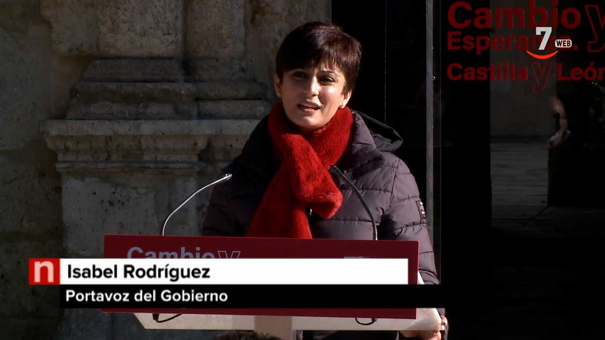 La ministra de Política Territorial, portavoz del Gobierno y vocal de la CEF del PSOE, Isabel Rodríguez, ha pedido que"'todos los castellanos y leoneses que quieren un cambio apuesten por el Partido Socialista". Así lo apuntó en un acto de precampaña celebrado en la Plaza de Santa Cruz de Valladolid, en el que arropó al secretario general del PSOECyL y candidato a la Presidencia de la Junta, Luis Tudanca, y donde subrayó que "esta tierra necesita incorporarse a la estrategia de modernización y transformación que el PSOE quiere para España", una apuesta donde "el medio rural está en el agenda; no en las fotos, sino en leyes como la de la cadena alimentaria o la PAC".