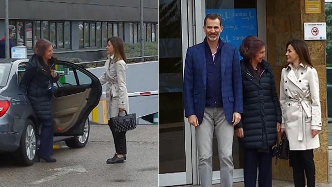 Los Reyes y Doña Sofía han llegado al hospital en torno a las 18:00 horas. La primera en bajar del coche ha sido la Reina Letizia, que ha abierto la puerta del asiento trasero de la Reina emérita. El Rey Felipe VI ha realizado un saludo con la mano izquierda a su entrada al hospital, mientras Letizia y Sofía intercambiaban algunas palabras.