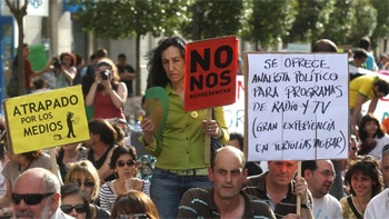 Este fue uno de los asuntos abordados por el medio centenar de personas se reunió en torno a la Plaza de Fuente Dorada de Valladolid para unirse a las asambleas ciudadanas, convocadas para esta tarde a partir de las 17 horas en numerosas ciudades del país, para continuar con la protesta que comenzó este sábado en las manifestaciones un año después de que naciera este movimiento social.