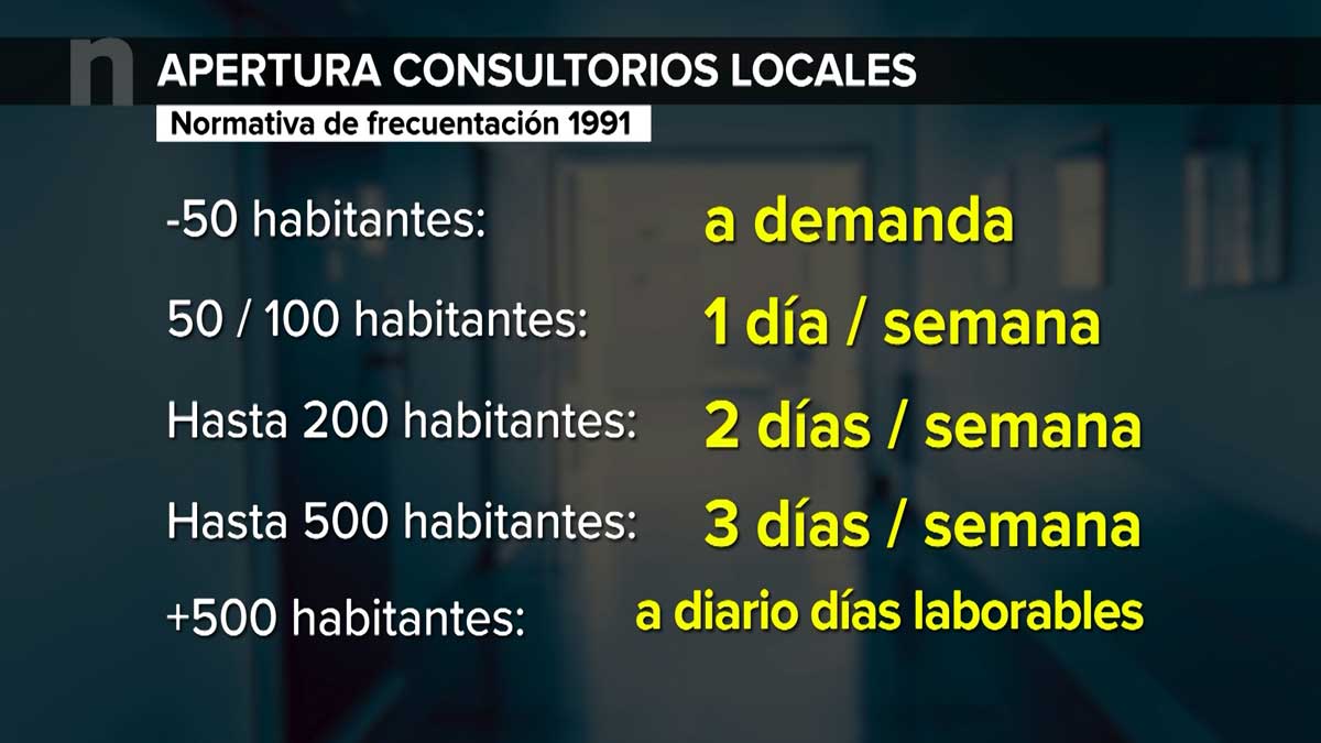 - Núcleos de 101 a 200 habitantes de hecho: consulta un día a la semana.
