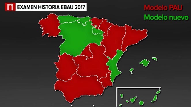 Sólo 7 Comunidades Autónomas han hecho un nuevo modelo de examen para adaptarlo a la LOMCE. Galicia, otra gobernada por el PP, no está entre ellas. De las pocas que a medio curso aceptaron las nuevas reglas del juego, cada una ha jugado a su manera. Unas han redistribuido las puntuaciones de las preguntas, otras han pactado que el examen fuese "razonable" y otras, como Cantabria, han reducido el temario: han preguntado según los estándares pero de los 97, sólo entraban en el examen 30.