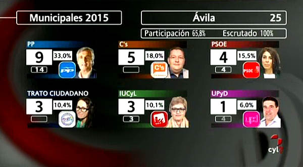 El Partido Popular ha perdido la mayoría absoluta que tenía en el Ayuntamiento de Ávila en estas elecciones municipales. La lista de José Luis Rivas ha obtenido nueve concejales, es decir, cinco menos que en los comicios de 2011, cuando obtuvo 14. De esta forma, necesitará buscar apoyos para poder gobernar, si bien como segunda fuerza figura Ciudadanos con cinco concejales, con el 98,1 por ciento.