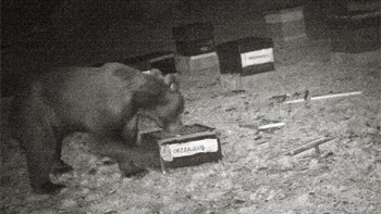 Estas fotografías han sido captadas por el propio apicultor en un colmenar que había sufrido varios ataques en los últimos días y que estaba sometido a una vigilancia especial, pues en ese lugar estaban colocadas cámaras del Servicio y del propietario con el fin de cubrir el mayor espacio posible.
