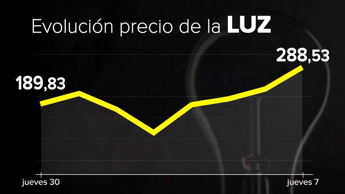Este jueves, el precio subirá un 52% respecto a hace una semana, cuando el precio de la electricidad en el mercado mayorista español estaba en 189,8 euros/MWh. Comparándolo con hace un año, el precio de la electricidad aumenta un 570%, es decir, casi siete veces más que los 43 euros que se registraban entonces.