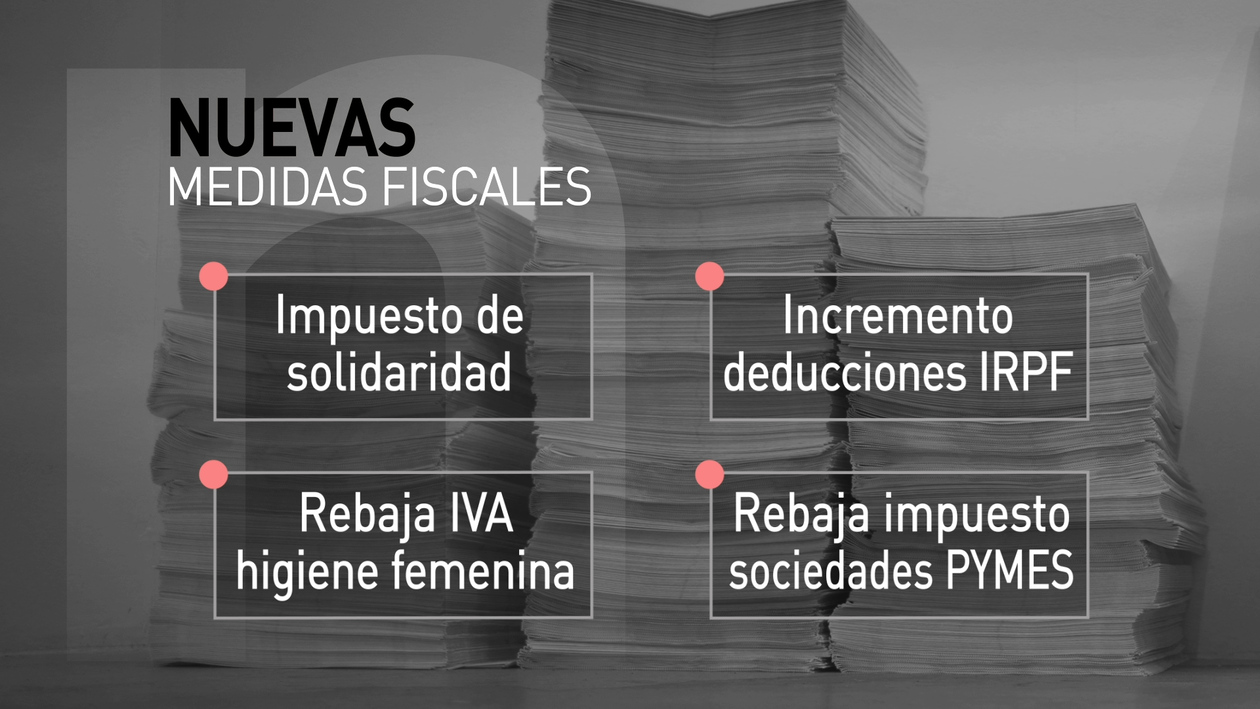 En el IVA, se bajará el tipo del 10% al 4% para los productos de higiene femenina. Con todo este conjunto de medidas, el Gobierno pretende recaudar 3.144 millones de euros adicionales.