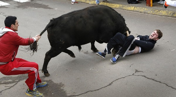 Los tres toros de este primer encierro urbano, pertenecían a la ganadería de los hermanos Cambronell.