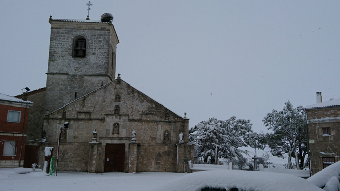 La plazuela de la iglesia está formada por un grupo de casas solariegas. La iglesia es una construcción que data del siglo XVI, perteneciente al estilo gótico tardío.