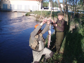 Únicamente a partir del mediodía, cuando el pantano ha había cerrado sus compuertas y las aguas volvieron a un cauce aceptable para la pesca el salmón prestó más atención a los señuelos que le presentaban los aficionados y sí se lograron algunas buenas piezas, fundamentalmente en el coto de Villagonzalo II, donde quienes tuvieron el permiso correspondiente para pescar en este coto específico si se lo pasaron medianamente bien.