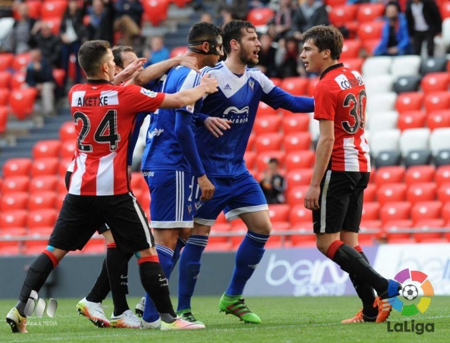 Bilbao Athletic: Remiro; Etxeberria, Ramalho, Yeray, Saborit; Guarrotxena (Córdoba, m.67), Unai López (Gorka Iturraspe, m.82), Vesga, Seguín (Jurgi, m.82); Aketxe y Santamaría.