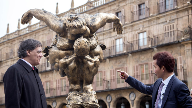 Distintos enclaves monumentales de Salamanca, como la Plaza Mayor o la Plaza de Anaya, albergan desde este jueves, 31 de enero, trece esculturas del artista chino Xu Hongfei, en la que será la primera exposición en España de este reconocido autor.
