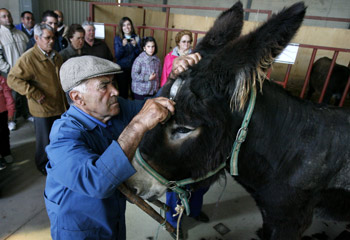 El mirobrigense Tomás Cid, de 77 años de edad, ha realizado una exhibición de cómo esquilar burros, una tradición casi extinguida en España. La actividad se enmarca dentro de la programación de la Feria de Ganado de Mayo de Ciudad Rodrigo (Salamanca).