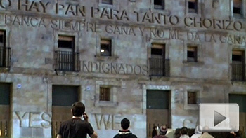 Rebecca Ringst lo ha vuelto a conseguir. La artista alemana ha sido capaz de nuevo de captar la atención de los viandantes con su nueva instalación para el Fàcyl. Esta vez, se ha decantado por proyectar sobre la fachada de la Casa de las Conchas los lemas de los jóvenes del 15-M.