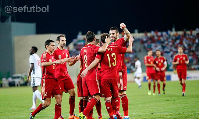 ESPAÑA: Reina; Juanfran, Bartra, Íñigo Martínez (Ramos, min.80), Alberto Moreno; Xabi Alonso (Busquets, min.42), Koke (Iniesta, min.57); Mata, Cazorla (Villa, min.58), Navas (Pedro, min.66) y Negredo (Llorente, min.46).