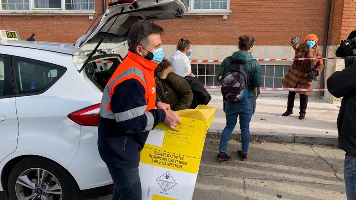 Las primeras dosis 'testimoniales' de la vacuna contra la COVID-19 han llegado en una furgoneta sobre las 10.00 horas y han sido introducidas en el edificio del Servicio Territorial de Sanidad por agentes de la Policía Nacional. Desde han partido escoltadas por la Guardia Civil a una residencia de mayores de Cevico de la Torre, en el Cerrato palentino.